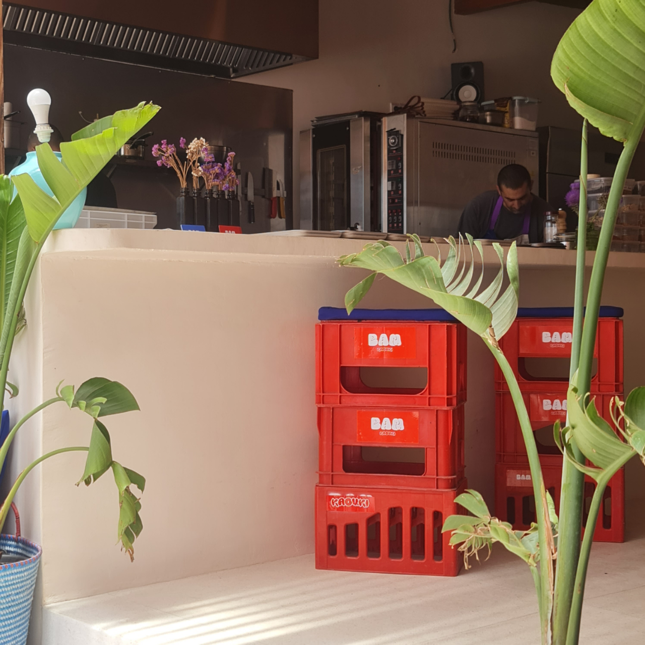 Encore une nouvelle cantine, à Sidi Kaouki cette fois. Elle s’appelle BAM pour Bar à Manger. Paul et Aziza sont aux commandes. Paul propose une cuisine entièrement faite maison jusqu’au pain et sublime les produits locaux et de saison grâce à la fermentation. J’ai adoré la salade de tomates en gaspacho, la salade de concombres fermentés, vinaigrette au tahiné, le chèvre frais et sa petite sauce à l’ail. Chaque plat est une explosion de saveurs.
