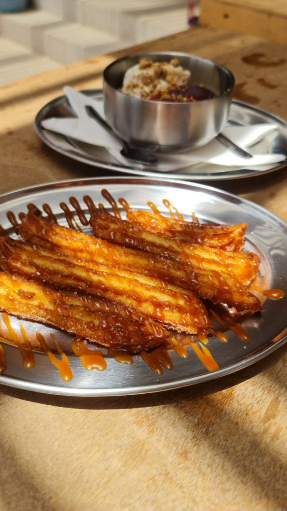 Mention spéciale pour les desserts : churros au caramel miso et nectarine crème fouettée crumble noisette. Il paraît que la mousse au chocolat est aussi une dinguerie.